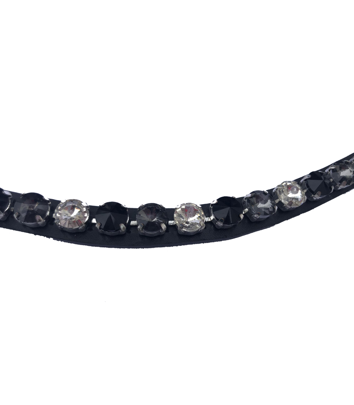 Le frontal Rockstar de chez JMR Pro est un frontal en cuir décoré de gros strass noir/gris/argenté. Ce frontal est en cuir souple.